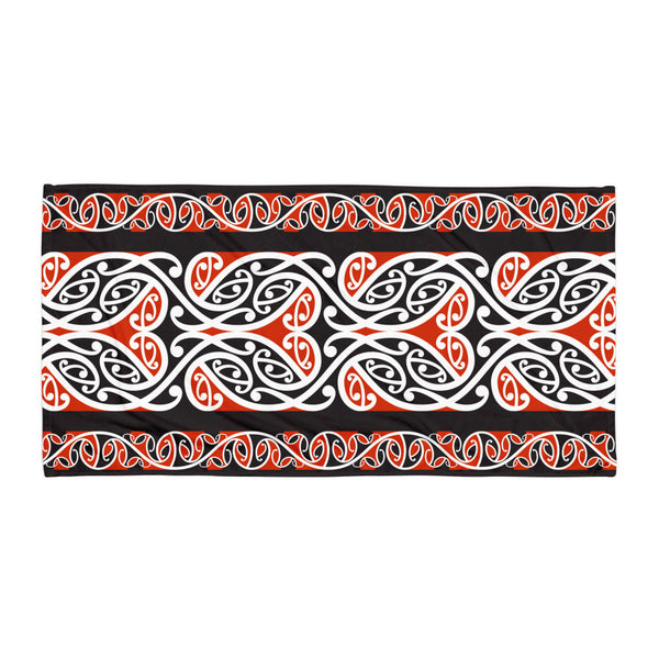 Embrace the spirit of Aotearoa (New Zealand) with this Maori beach towel, featuring a striking Kowhaiwhai pattern.