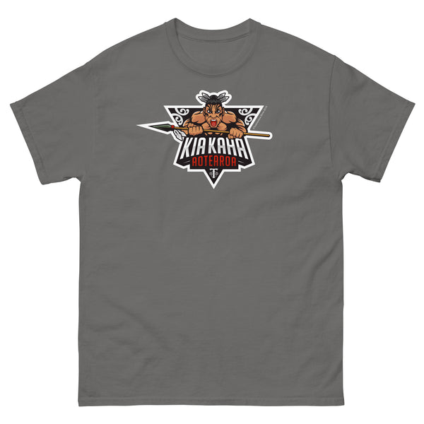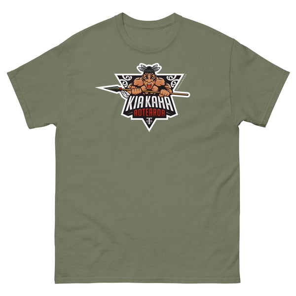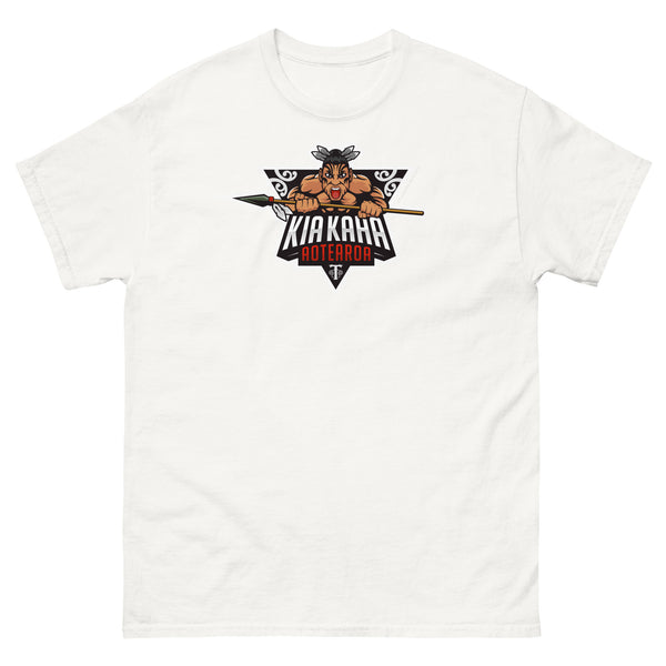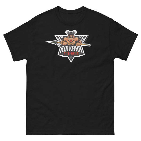 Own the spirit of resilience with the KIA KAHA AOTEAROA tee. This bold graphic features a fierce Maori warrior mid-challenge, armed with a Taiaha (traditional weapon).